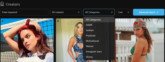 Admin can create categories in the backend and tag models to a specific category. Users can filter the creators based on their categories.