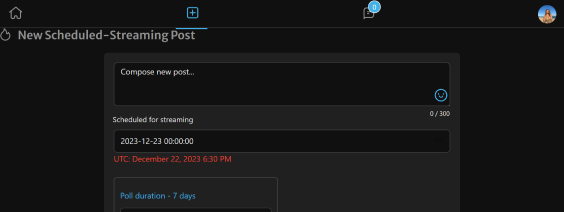 Creators can schedule their live streaming for the future, and the users ( can see on their homepage that the model is going live at the scheduled time.