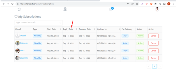 - The expiration date of the subscription is listed because when the user has cancelled the subscription ,it will be available until the expiry date.