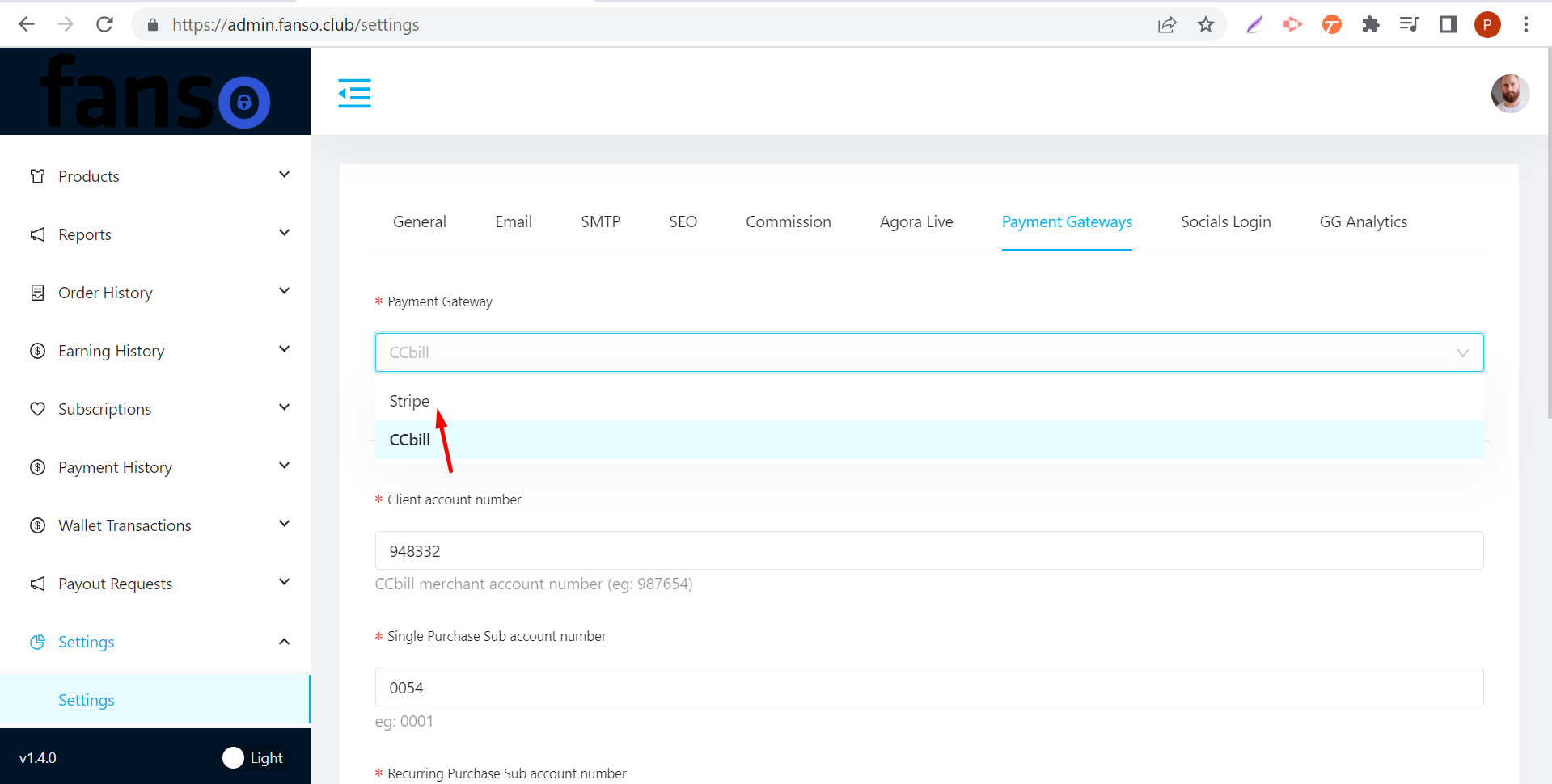 Now, in Fanso v1.4 – We use Stripe standard & CCbill as payment processors. If you’re planning to run a non-adult business, you can use Stripe processor, whereas if you’re an adult platform, then it is recommended to use CCBill.