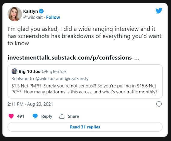The self-proclaimed popular Adult streamer Amouranth states that she makes over $ 1 million per month. You can view it in this Tweet.