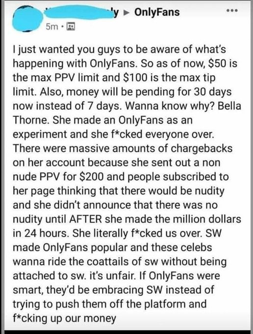 OnlyFans modified its payment policy by setting a limit to the subscription amount models charge to $50 and the tip amount to $100. This move from OnlyFans was after Bella Thorne earned $1 million on the platform in a day.