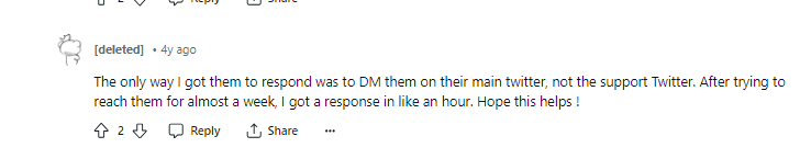According to a few Reddit answers, you can even DM them on their official Twitter account. In fact, this could get you a faster response!