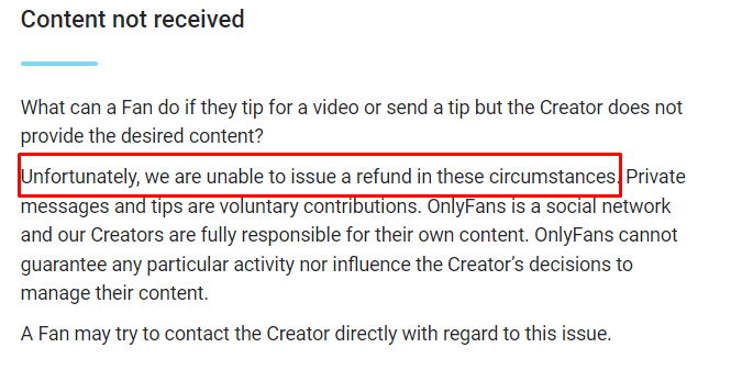 No, OnlyFans doesn’t offer refunds on tips, private messages, and paid posts. That’s what the OnlyFans website states. Why? Tips are voluntary contributions from creators who are fully responsible for their content. OnlyFans don’t try to influence or control the creator’s decision.