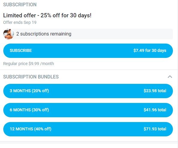 Her regular subscription is set to $9.99/ month, and she also sells subscription bundles at the following prices.