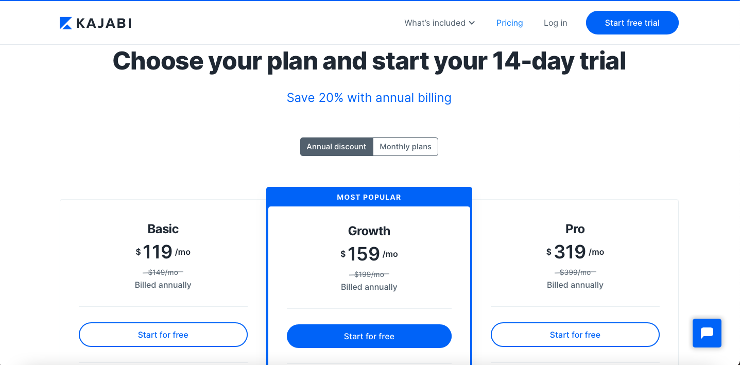 - The pricing is high compared to other solutions in the market. The basic plan starts at $119 per month for Kajabi.