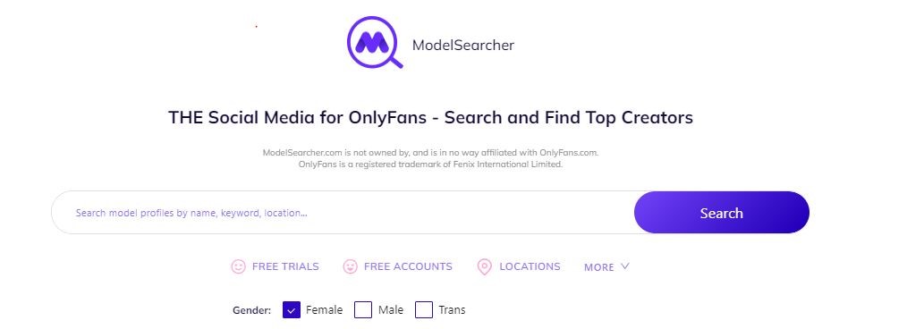 ModelSearcher is popular for its advanced search engine that allows users to search OnlyFans profiles through keywords, names and locations. As a content creator, you can create a detailed profile description and link your OnlyFans to other platforms.