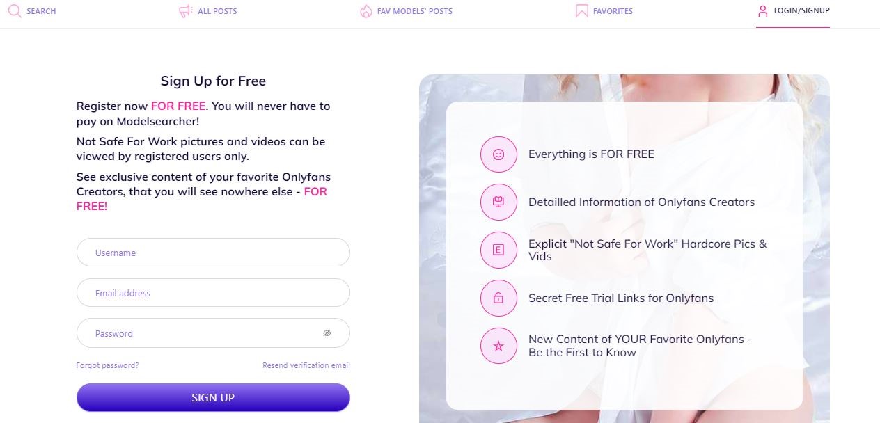 Mark your content: Once you decide to sue ModelSearcher to promote your OnlyFans, you can mark your content SFW (safe-to-work) and NSFW (Not safe for work). This helps users find the content they are exactly looking for and NSFW content can only be viewed by logged-in users, meaning privacy will be ensured.