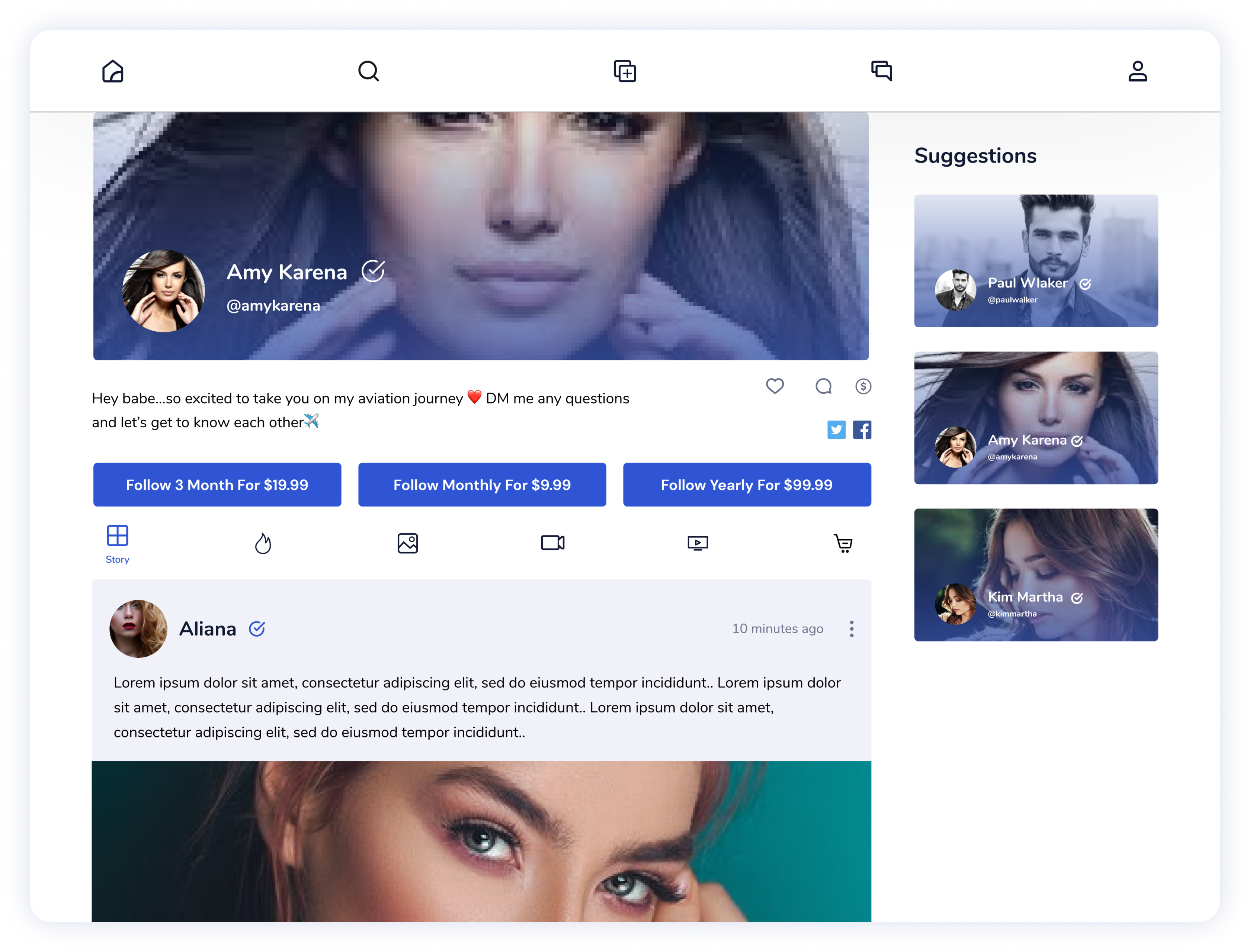 Increase visibility and help creators grow more popular with the built-in social community feature. Instagram like stories can be created and photos & videos can be sold on the news feed. .